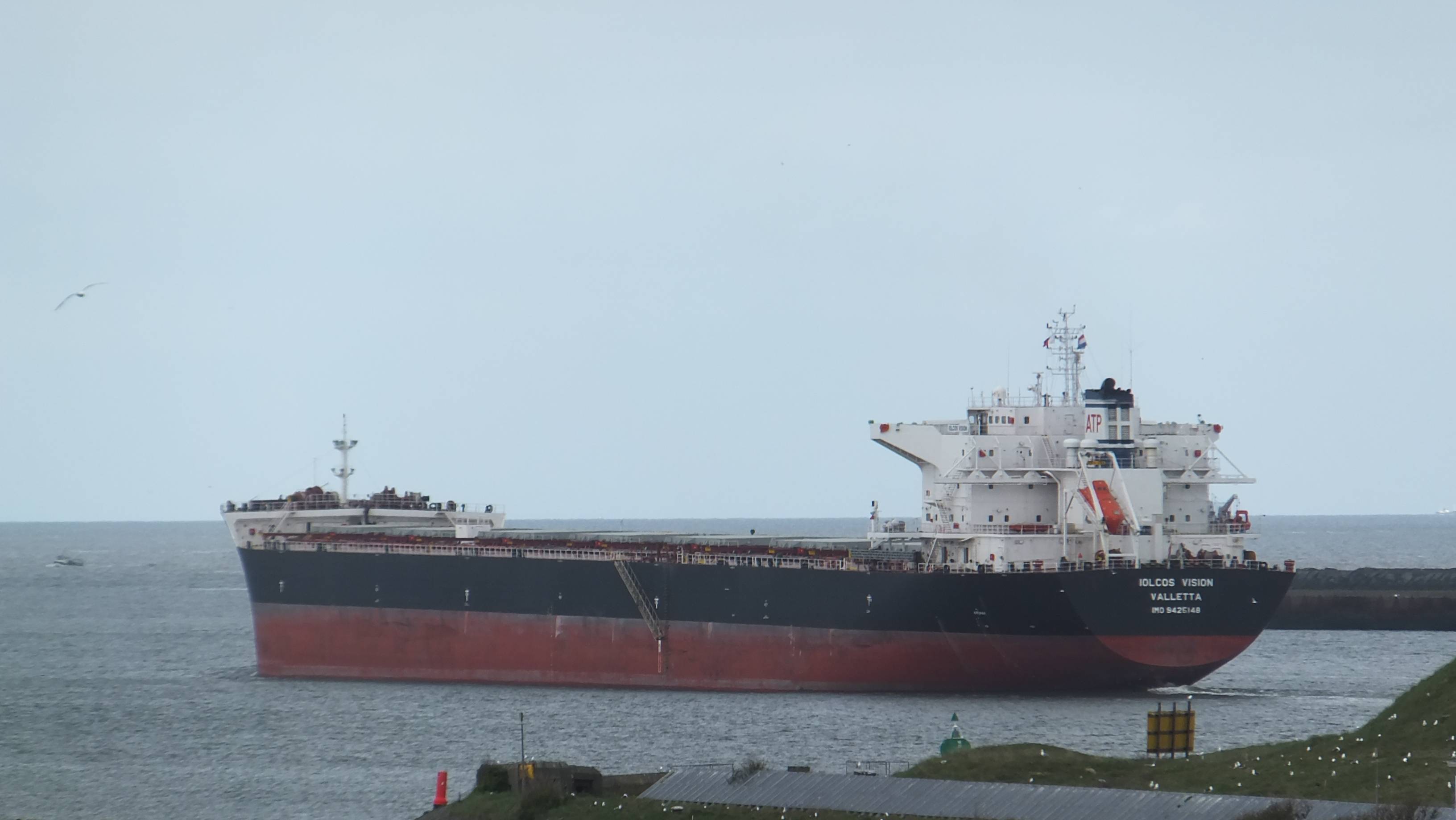 Turkse tanker VARKAN MARMARA passeerde pieren van IJmuiden op weg naar Petroleumhaven Amsterdam.